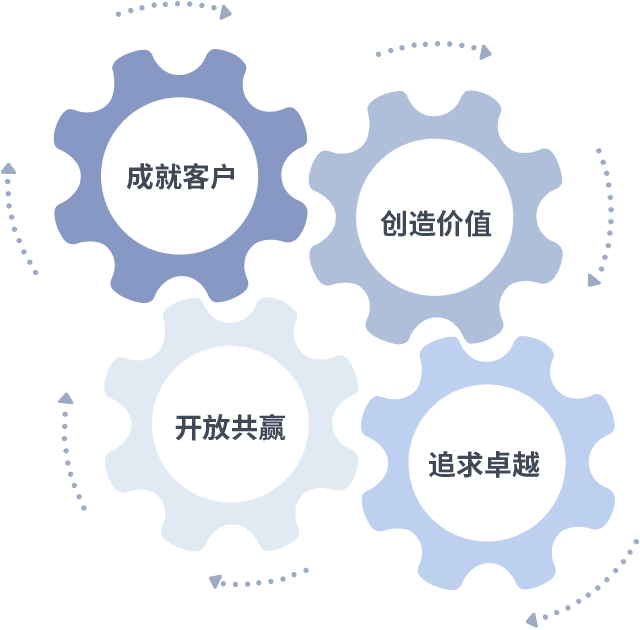 成就客户是一切决策的出发点,创造价值是衡量所有工作的标准,追求卓越是J9国际集团做事做人的态度,开放共赢是J9国际集团的格局也是最终的结果。价值观的齿轮环环相扣,推动着组织里的每个人不断向前。
