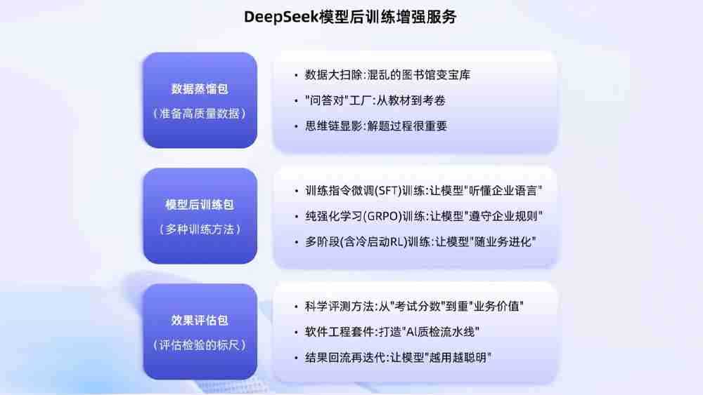 • 指令微调训练/纯强化学习/多阶段混合式训练方法,让模型更懂企业